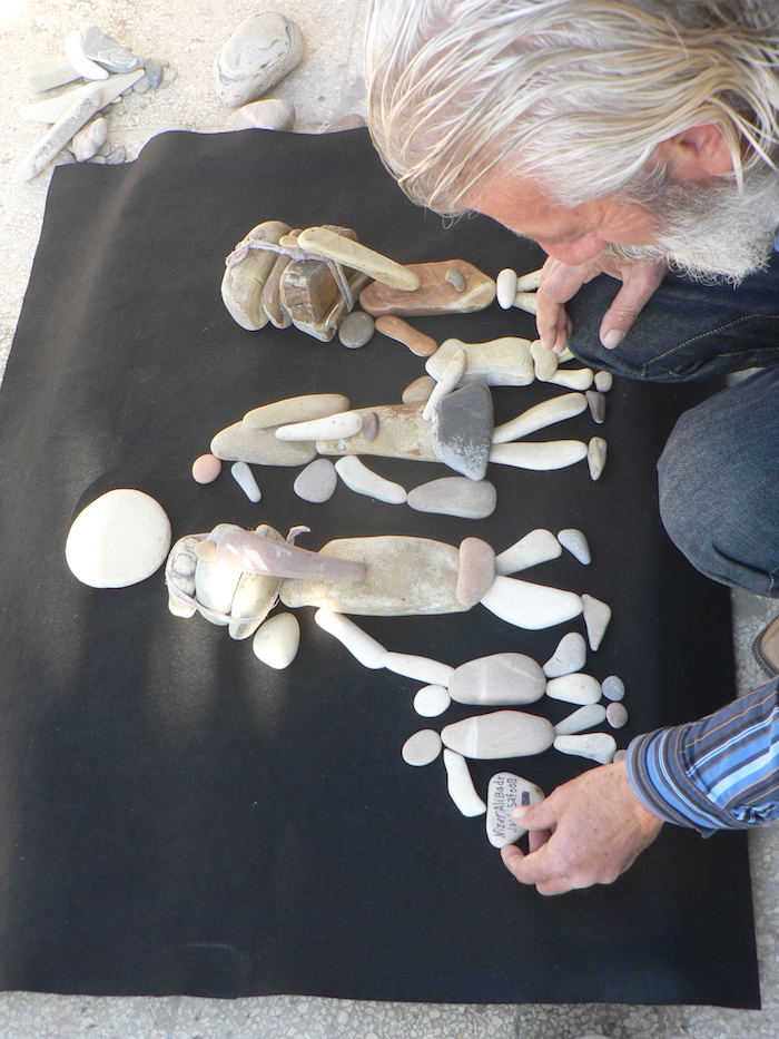 To complement the presentation of videos and short films, an accompanying exhibition features the works of Nizar Ali Badr which have gained wide attention for their simple, poignant message. His medium of choice are stones, the kind of pebbles you find on a beach, and with those he “paints”, he sculpts whole stories, representing people in their everyday lives – sometimes joyful, around a celebration, at other times in sorrow, in distress, in flight. With his work, the artist sets a mark of solidarity with people around the world who live in war and terror.
