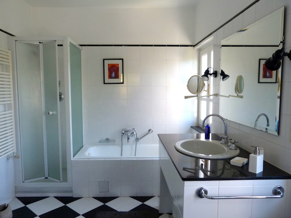 Thanks to the position of the property on a gently sloping hill, the guest apartment on the lower ground floor with private garden access, has plenty of character. The apartment offers an eat-in kitchen, two bedrooms and a small bathroom. Also on this floor level are the 60 sq.m. utility and storage rooms and a cellar.