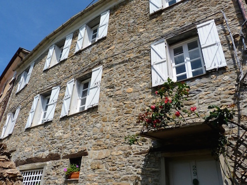 This natural stone house is situated in the historic village center. The current owners are both artists and have lovingly renovated the house with much attention to detail. Exposed oak beams in the living area, built-in wardrobes in almost all rooms and beautiful terra cotta and slate flooring are just some of the features worth mentioning. The house can be accessed by car through a small cul de sac and a garage and off street parking are available in front of the house. Planning permission to create two further parking spaces on the grounds has already been granted.