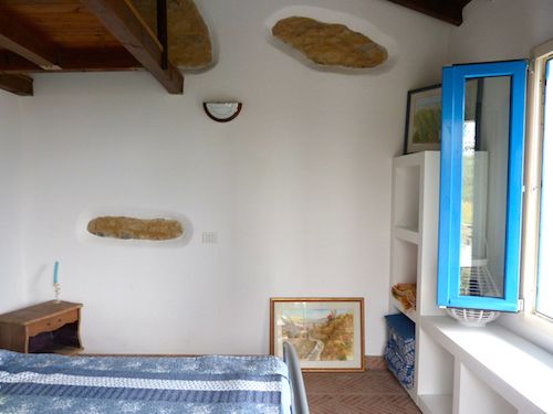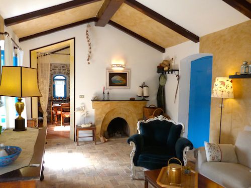 Both houses were built in the traditional Ligurian style and recently renovated. The main house, a former chapel, offers 62 sq.m. of living space, split over two levels. The main entrance, which opens straight into the comfortable living room with open fireplace, is located on the upper floor level. From here, there is a dining room and a small but well-equipped kitchen.
