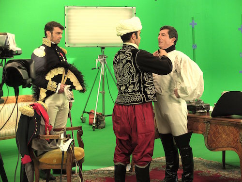 That is a massive challenge for any actor, even for a language aficionado like Marc Duret who is perfectly fluent in English, French and Italian. It requires expert phonetic transcription of the dialogues, and weeks of listening to taped dialogues to get intonation and inflection right. But for authenticity’s sake, Fabrice insists on using original contemporaneous languages in parallel – Napoleon features French, Russian, and English – and it is well worth the effort: his films are distributed globally, and his buyers from the USA to China actually prefer to subtitle rather than dub the original dialogues… with the notable exception of the BBC who recently purchased Napoleon and insisted on doing a British voiceover.