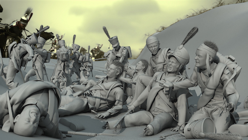 Post-production, however, is a different matter – that took Fabrice and his team eight months. Eight months of hard work at the computer to create the realistic special effects and the sound design…. no trivial matter to get everything just right, from battle cries to gun shots and whinnying horses.